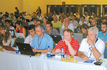 International Committee for the Conservation of Atlantic Tuna meeting Recife, Brazil, November, 2009. Environmental Non-Governmental Organization (ENGO) representatives nearly filled a section of the meeting hall. They are facing the main meeting hall where ICCAT members are seated. Their influence is said to have been essential in the changes to ICCAT policies that to date have ignored actual conservation. Photo by R.Ruais