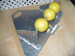Wing Cam designed and built by Bill Lee for observing the performance of trawl nets. The device holds the camera and can be flown around below the surface for varied angles. of view. ?Photo by Bill Lee |