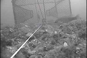 Haddock trap designed by Kelo Pinkham. It was modified to catch cod and works well. Lee's camera recorded the activity of fish around the trap for fine tuning functions. Habitat restoration, selective harvesting, and by-catch elimination are a few of the assets from this work. ?Photo by Bill Lee |