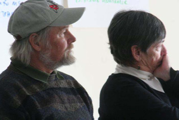 Islesford fisherman Jack Merrill and Department of Marine Resources's Bureau of Resource Management director Linda Mercer. Laurie Schreiber Photo