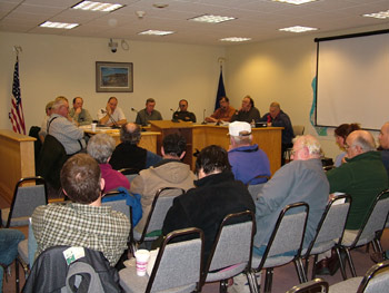 Dozens of people appeared at last weeks meeting of the Lobster Zone B Council to discuss a problem that involves fishermen violating the 51/49 percent rule, which requires fishermen to place the majority of their traps in the zone they declared as license-holders. Over the past year, said Marine Patrol Lieutenant Alan Talbot, and in the last four months especially, the Marine Patrol has had numerous calls and comments about people not fishing any of their traps in the zone they declared for their license, and instead are fishing in the adjacent zone. The Marine Patrol has been trying to figure out how to enforce the rule, Talbot said. The law was tweaked by the legislature last session when it became a requirement for fishermen to declare their second zone also. LD 1510, An Act to Amend the Lobster Fishing Laws in Maine, was designed to improve enforceability on this issue. It imposes a requirement that all the zones which a license holder indicates on their license application will also appear on their license, and that a person may not place any traps in a zone not identified on their license. With regard to the requirement that a person fish the majority of their traps in their declared, home zone, the law says the number of trap tags sold will be used to determine the majority of a persons traps, rather than the number of traps fished. The law became effective last September. But the change didnt fix the problem of fishermen using the second zone primarily, Talbot said. Talbot said he was notified by three fishermen about one man in particular who was setting his traps in Zone Bwhich includes Mount Desert Island and the surrounding areaand none in his primary zone. Colonel Joe Fessenden, the chief of the Marine Patrol, said Zone G (York County) has had problems with the issue for five years now. The issue there involves a lot of fishermen in Zone F (Casco Bay) who move their gear in the winter into Zone G. He said that the issue has been before the Lobster Advisory Council several times, but with no results. According to Fessenden, the situation for Zone B is a little different because it involves men who fish a little less than half their gear in Zone B and none in their primary Zone A. Zone B Council chairman Jon Carter said hes had a ton of calls on the problem for two years now. He said perpetrators are essentially thumbing their noses at people who are on the waiting list to get into a zone and who are going through the process legitimately. At last falls meeting of the Department of Marine Resources Lobster Advisory Council, Carter noted a scenario that involves a man who has a Zone A license, but fishes gear only in Zone B, with no traps in Zone A. The person, Carter said, lives in Zone B, but does not have a Zone B license. He is one of a handful of people who have found a way around the 51/49 percent rule, he said. Talbot said he approached District Attorney Michael Povich to see how the matter might be addressed, and learned the wording of the law was problematic for enforcement. The law uses wording such as where a fisherman proposes to fish and is authorized to fish, Talbot said. According to Talbot, the DA said that the ambiguous wording makes the law unenforceable; for example, authorized, means can, but not must. Talbot said the wording might be fixed by using another word, such as shall. Talbot went on to say that another issue, which amounts to the difficulty of actually counting traps, compounds the enforcement problem. For example, he said, The Marine Patrol asks a Zone A fisherman to show them his gear. The man takes them into Zone A, pretends to look around, and says he had more than half of his gear there but someone must have cut it. In reality, the fisherman has his gear in Zone B. Its his word against ours, Talbot said. But until we change the law, its unenforceable. Zone B council member Tom Lawson said everyone understands that the intention of the law is to address fishermen who straddle the zone lines and how they could use their gear. Fessenden said double tagging for the secondary zone might be part of the solution, but doesnt solve the problem of fishermen claiming to have traps in their primary zone and then saying they must have been cut. Zone G will be starting a pilot program for double tagging, he said. If anyone has a better idea, call us, Fessenden said (Boothbay Harbor, 633-9595). One man at the meeting suggested the burden of proof should be with the fisherman, not with the Marine Patrol. If an officer wants to see a fishermans traps, he must be able to show them, and if he cant, the Marine Patrol should require the removal of his traps in the secondary zone, the man said. On the Down East problem, Fessenden said that, because Zone A is now closed to new entrants, the problem might slow down. Enforcing trap limits and the zone lines over the past decade has been an absolute horror show, although the bugs have gradually been worked out, Fessenden said. In other business, Talbot told fishermen that if they have a federal fishing permit, they should make sure their federal operators permit is in order, as well. A situation along the midcoast last fall involved a federal permit holder who was boarded by National Marine Fisheries agents. His operators permit had expired and he was forced to dump about $6,000 worth of lobsters overboard. Even if a federal permit holder is fishing within the state line, he still must have his federal operators permit, Talbot said. Members of the zone council noted that dragging for sea cucumbers is ruining good lobster bottom, adding they would like to see regulations. The pickle season runs from October through June, and is closed July through September. Some council members suggested Senator Dennis Damon, co-chair of the Legislatures Marine Resources Committee, should be approached on the matter. |