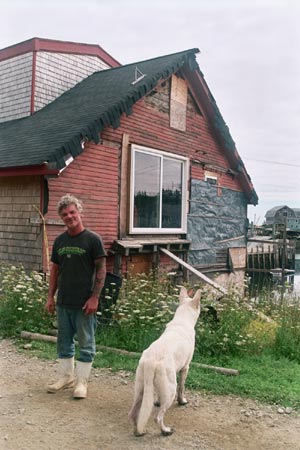 With paint, lumber, shinglesall lugged from the mainland by ferryMacLeaod is putting a fresh face on the building and the waterfront of this tiny fishing village. He has added a big dormer window to the top floor for living space.