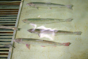 The virus only spreads when the eggs hatch. It then expands rapidly and the tiny fish that hatch from infected eggs hemorrhage and die. As a precaution the Sunderland facility destroyed approximately 8,000 eggs from each of the spawning salmon, an estimated 718,000 eggs in all. Of the 2007 run of salmon returning to spawn in the Connecticut River watershed, two samples from the100 fish tested were positive for the virus. The fish were captured by the staff of the Cronin National Salmon Station in Sunderland, Massachusetts. This federal facility, part of the Atlantic Salmon Restoration Project, is the only one in the Connecticut River watershed, which collects sea run Atlantic salmon returning to spawn. Healthy salmon spend two years in the fresh water where they were born, and then at 4 to 8 long they migrate downstream to the ocean. In the process they change physiologically, their liver, kidneys, and blood chemistry transform to function in salt water. From New England rivers, they head north to the Arctic Circle where they feed on capelin, a small fish. After two years in the Arctic they swim back south until they recognize the scent of the river they left two years earlier. Weighing an average of 10 lbs., they swim up to the headwaters of their river of birth. Atlantic salmon have been extinct in the Connecticut River since the 1700s when dams were built on it and many of its tributaries. At one time 880 dams blocked passage of the once enormously plentiful fish. There are still 800 dams in the Connecticut River watershed, one of New Englands largest rivers. Now they travel as far upstream as fish ladders or the restoration project allow. Every year the Cronin salmon station catches returning salmon, collects the eggs, collects sperm from males, artificially inseminates the eggs and hatches them out. Unlike other salmon, Atlantic salmon do not die after spawning, but spawn for five or six years, and more than once per season. The salmon are tested for viruses, have a tracking chip implanted in them and are kept at the station. The Cronin Station is the only hatchery in the world mating fish using DNA testing to maximize genetic diversity and strength. Once hatched, the small fish, molts, are released into the river. The hatchery manager, Mickey Novak, said, We dodged a bullet this year, we nipped it in the bud. There will not be any long term impact. Other precautions taken were the cleaning and sanitizing of tanks that held the fish and running the water through an ultraviolet system to sanitize it before discharging. This was the first time the virus was confirmed in North America. The genotype of this particular virus matched a virus common in Atlantic salmon from rivers of Europe, Norway, and Scotland. This finding verified that the wild American Atlantic salmon were mixing with wild European salmon in the feeding grounds they both migrate to at the Arctic Circle near Greenland and Baffin Island. Wild salmon from European rivers also migrate to the Arctic. On the way they swim through coastal waters where many large northern European aquaculture facilities have millions of salmon penned. It is in the tons of feces that pour from these pens and cover the bottom, that the viruses grow, spread and infect passing fish. Genetic tests of this particular virus suggests Connecticut River salmon picked up the virus while mingling with European salmon. In November 2007, there were 5.5 million salmon killed by another virus at salmon pens in Chile. Chile produces 35% of the worlds pen-raised salmon. For a decade in the 1990s, Scotland salmon farms had recurring problems from viruses. The pressure of bursting world populations needing food, diminished and threatened wild fisheries, and the looming disaster an inadequately planned aquacultural production expansion poses to both, are problems that have to be faced. Which of these problems the U.S. governmentfrom the Department of Commerce to NOAA to NMFS chain of commanddecides to focus on first is of concern to scientists and fishermen alike; each who recognizes that such a decision could have broad consequences. |