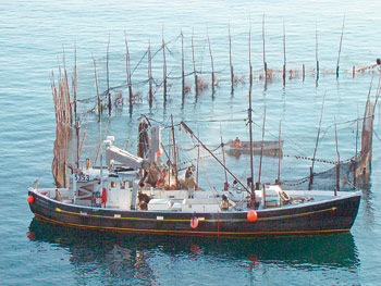 The fixed gear fishery, weirs and stop seines, would be exempt from herring effort control mechanisms being proposed. Man O’War weir seen from top of White Rock cliff. The Mauvis (carrier out of Head Harbour, Campobello Island) is owned by Sonny Flynn. Photo by Chessie Johnson |