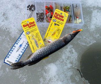 Some people probably doubt that artificial lures can catch as many pickerel as live bait. Rest assured, they do. In fact, my success with artificials often tops that of companions using bait. And given that jigging is so effective, let me also mention the great benefit realized by not constantly immersing your hands in icy water, baiting hooks, fussing with wet, cold spools and handling frozen lines.