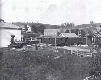 The charms of this scene, with its glinting brass, lazying boys, hilltop apple orchard, and bundles of sweet-smelling shingles, would have been lost on grieving former stockholders. Chartered in 1848, the road was supposed to have thrived by tapping a region filled to bursting with firewood, ship timber, fat cattle, and luxuriant sheep. The route presented no great difficulties, the stock was said to be a certain sellout. In fact, following the standard scenario, costs were underestimated and income overestimated. Meandering slowly northward from its connection at Leeds with the broad-gauged Androscoggin and Kennebec, the road finally reached Farmington in 1859.