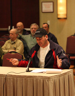 Attorney Stephen Ouellette testifying at a NEFMC meeting. “There are currently approximately 325 limited access vessels in the fishery, if these 325 vessels had stacked permits, cutting them in half, the loss of income to the local communities is conceivably $73 million in payroll. © Photo by Sam Murfitt
