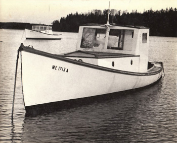 Gower’s first boat, built in 1939, sold for $375, with engine. Seen here in 1972. (Collection of Douglas Dodge, Beals Island, ME)