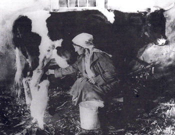In the days of hand-milking, few cows received unconditional affection from their milkers, or vice versa. “Hard-milking” cows had meaty, unhandy teats, or else small teats not large enough to hand. Maternal cows refused to “let down” their milk for anyone other than their calf. Spiteful, “spleeny” cows let fly well-aimed kicks — the cow is possibly the only creature that can kick sideways, and with any foot. And then there was the rare biter. Before antibiotics, mastitis — “garget” — was a vexing problem, and likely “blind” udder quarters were common. Life being what it is, the ideal “easy milker,” who stood like a statue while her milk all but flowed into the brimming pail, her udder “milking out like the proverbial wet washrag, would be the one likely to cut off the end of a teat with a hoof, cast her withers calving, not “settle” with the bull, test positive for TB, die a horrible death from “hardware disease” (usually caused by an ingested roofing nail or piece of old fence wire), or, if all else failed, choke to death on a potato.