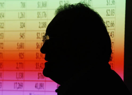 Dan Georgianna silhouetted before fisheries data screen at January 25. A scientific report has determined that catch shares has caused unforeseen major shifts in the distribution of quota. “There’s this disconnect between saying, ‘Revenues are higher, everything’s fine,’ and people in the business and on the docks saying, ‘No, not everything is fine.’ ” —Dan Georgianna, UMass economist ©Photo by Sam Murfitt
