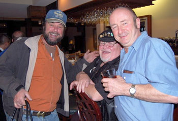 In the racing conference room at the Fishermen’s Forum. (left to right) Chuck Williams (MAJOR WEAKEYES) of Vinalhaven, Butch Hackney of Bucksport and Wesley Shute (DAY DREAMER) of Stockton Springs. Shute is playing his cards close to the vest about the coming MLBRA season. 2010. Brenda Tredwell photo