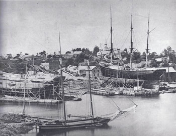 In Blanchard’s yard on Union Wharf, is the magnificent hull of what I hear men proudly say is one of the biggest ships ever built in the State of Maine. Near it, and a little west of Royall River bridge, a barkentine approaches completion under the eyes of Hutchins & Stubbs; while on that broad yard just east of the river, two brigs and a bark...bear testimony to the business-getting abilities of “Master” Giles Loring....