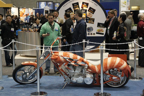 Value added shrimp at the International Boston Seafood Show, March 21, 2010. Exhibitors thought the atmosphere at the show was more upbeat this year. Chinese interest in U.S. seafoods was also greater. Some observers see the potential Asian markets providing the much needed fix to lagging profit margins for Maine lobstermen. A 93-million pound lobster catch could change its relative size and value in a Chinese market 1.3 billion strong. ©Photo by Sam Murfitt