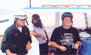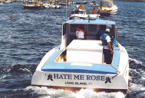 Maine lobster boat racing has been a summer pastime for many years up and down the coast and there are few people who would deny that one of its most colorful participants is Stevie Johnson of Long Island. This loud talking island native has been entertaining racing fans and racers alike with his brand of machine that can only be described like the man himself...Very Loud! The past few years Stevie has dominated his class with the Hattie Rose a 36' Crowley Beal with an 892 Detroit under the box. Comparing the Hattie Rose to others, she is considered the good girl of the fleet. She hauls traps around Long Island during the week but when the eve of race day arrives you can usually find her being feverously worked upon by Johnson and his crew as they squeeze every bit out of the engine. No one is sure how he manages to get the extra horse power but it is not uncommon for last minute requests for quarters. By Stevie’s own admission he loves to cause a scene and has been doing it rather successfully even before he entered the race scene. (Those are stories for another day.) All of the boats he has raced have been built by the master himself. The first two, the Serra Dawn and the Katie Jean got him started in racing but in the year 2000 Stevie decided he wanted something “spectacular!” Along came the bad girl of the fleet, the Kathleen II. Stevie had a vision of building a 36' Crowley Beal with a big engine. He heard of a 1942 Packard-Rolls Royce engine which was in mothballs in New Hampshire. The story goes that it came out of a PT-111, had 1350hp, and was rebuilt in 1957. Stevie started making some phone calls. The gentleman who was in possession of the object of Stevie’s desire wanted a little more money than seemed reasonable for a boat that was racing for bragging rights so they made a deal. The engine went to Long Island on loan and the Kathleen II made the first big scene in Maine lobster boat racing. Only in the mind of this creative genius (or lunatic) could his latest wanna be lobster boat the Hate Me Rose have been built. This 28' glass boat now dubbed a “Jingle Johnson 28” was purloined from the burn pile on Long Island and painstakingly redone under the watchful eyes and skillful hands of Johnson. The months’ long project was squeezed into the shop between paying jobs and launched on June 17 just a mere 48 hours before the Boothbay Harbor lobster boat races. To the delight of many, especially Johnson, she floated despite having an engine slightly larger than recommended. Another favorable aspect of the very limited Hate Me Rose sea trials was Johnson’s ability to keep the craft in relative control. All of the lobster boat racing community eagerly awaited the maiden flight of the some what ugly step child of the Hattie Rose. (It has been widely rumored the Hattie Rose gave generously of herself to benefit the new race rookie.) The foot traffic traveling the lengths of Brown’s Wharf float to check her out have only been surpassed by the visit of our 41st president George Herbert Walker Bush. Johnson greeted his legion of fans, well-wishers and fellow competitors accepting the frenzy of “OOOHHSS,” “WOWS,” and “Holy Mother Mary of God...Please be careful!!” with his usual gusto. When race time arrived the faithful watched as the crew donned their newly purchased life vests, borrowed bicycle helmets, and of course, never leaving anything to chance Johnson rigged a kill switch using a piece of bait twine. He took the helm and joined by fellow conspirators John Billings, Bill Dyer, and David Johnston headed towards their destiny. Although her inaugural appearance left them with a disappointing 2nd place against the only other boat in the race Johnson has pledged to his minions he will return to Long Island and diligently work on the slight stabilization issue. He was heard at the awards ceremony later in the day saying, “I really thought those boys would be just as good as trim tabs!” So a word of advice to those looking for something to do on a lazy weekend day, find out where the lobster boat races are being held and come watch Stevie make a scene! We’ll see you at the races! After the initial writing of this story the Hate Me Rose has had a bit of a retro fit. She is a little wider and just about as ugly as a boat can get. Stevie surmised he could add a few inches (20") to either side of the Hate Me Rose in order to keep her upright and use the space during the week as lobster tanks. On the weekends the space comes in quite handy as extra beverage cooler space. The 2" Styrofoam lined tanks helps keep everything cold! Maine Turnpike be damned, this widening effort proved to be well worth it as the Hate Me Rose finished in 1st place. Stevie proudly proclaims that the new version of the “Jingle Johnson 28” is called “Jingle Johnson 28 XU”... Extra Ugly!!! Wild Wild West is between a rock and a hard place in late May. A fire at C&C Machine in Ellsworth has thrown a few wrenches into the works for James West and Glen Crawford. Glen builds the power plants that have shot Wild Wild West like a rocket across lobster boat race courses. He has worked with West for years, including West’s previous boat “High Hopes & Empty Pockets. Shuffling the Cards Behind the Boathouse “I Got Fired!!!” |