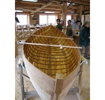 Nat Hussy's zero carbon lobster boat built by Carpenters Boat-shop in Pemaquid. Hussy rows the peapod to hand haul his fifty traps. the peapod to hand haul his fifty traps. Nat Hussy Photo