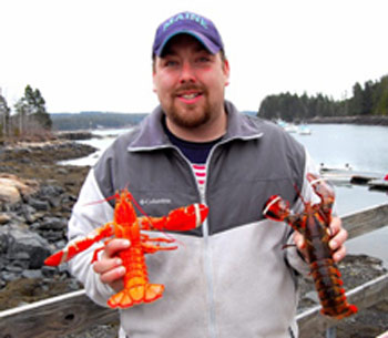 Darling Marine Center scientist Bob Steneck said, Lobster pigment is complicated and has several layers. Blue lobsters result from the near absence of all pigment but they are more common than red lobsters. Blue lobsters are estimated to be one in a million. Red is something higher than that. I’m guessing the chances of a red lobster is one in several million.
