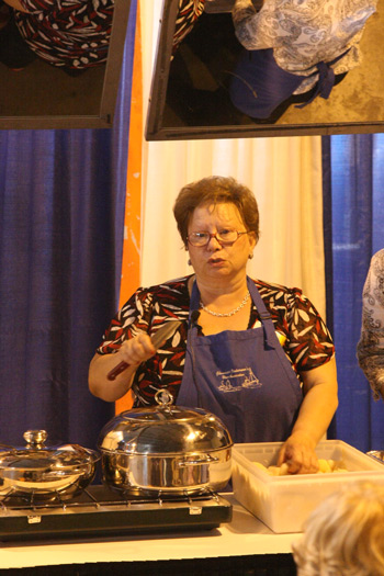 Andrea Sanfilippo at a seafood cooking demonstration, Commercial Marine Expo, New Bedford, MA , June 10. ©Photo by Sam Murfitt