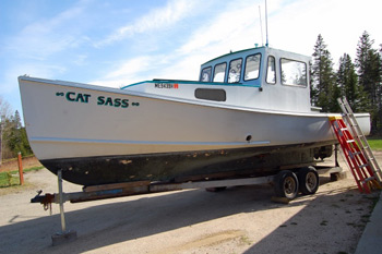 Family Julz, Eaton’s first boat, was a 23' Sea Way outboard with a 115 HP Mercury outboard engine. Eaton now lobsters out of Stonington on Cat Sass, a 1974 REPCO 30' overhauled in 2002.