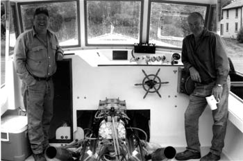 On Tuesday before the race, the word was that UNDERDOG will be making a little more powershes got a 540 crate engine, its the same engine block, only its bored to 540 . Calvin Beals LITTLE GIRL is the first wooden lobster boat he has built in a very long time. Even if she wasnt good to go, those who hadnt seen her couldnt wait to get a look. There was also speculation surrounding a new boat from Stockton Springs, Wes Shutes DAYDREAMER, which has a blower. New to the circuit, people wondered what she could do. Shutes reaction is cool and un-phased when its mentioned that, at this minute, there is probably more total (lobster boat racing) horse power moored in Stockton Harbor than any other place. He nods once, his firm gaze unbroken with a focus that could cut glass. For Now, he said. In 2005, members of The Maine Lobster Boat Racing Association voted at their annual meeting (held during the Fishermens Forum at the Samoset Resort) to allow blowers to be used on engines. A blower is a force-induced power booster fastened on top of the engine and driven with the belt from the crankshaft. Unlike the situation with naturally aspirated engines, fuel is pushed with compressed air (rather than sucked) into the combustion chamber, where its then pumped up with an extra shot of gas. Some of the super charged European sports cars (the Lamborghini Gallardo Superleggera 530hp, and their Murcielago LP 640s, and Jaguar XJR Supercharged /400hp) use compressed air fuel delivery, which is similar to what you get on an engine with a blower. According to one seasoned race mechanic, While no sanctioned Lobster Boat Racing Committee would even dream of allowing alcohol blowers, in reality, gas burns hotter. Alcoholwith a cooler burnis actually considered safer. Ariens pull truck engines use alcohol blowers in competitions. Another source said The old Detroits, 471s and 671s, all had them [blowers]. They were used on diesels first, and theyve had them on foreign performance cars for years. Like Lamborghini Holding Company, Wes Shute admits high horsepower isnt green and, its expensive, costing $130.00 for less than an hours running time and burns five gallons of gas in 12 minutes or less. But then Daydreamers not a boat youd casually go out and haul traps in, either. I was disappointed the cops didnt show when I fired her off, joked Shute, assuring me he didnt mean it as we looked over the blower restraint belts. All aluminum bolts, he added, fiddling with the lucky lobster pasted near the windshield. Wayne Canning has also done some of the work and explains the engine in understandable terms; The fly wheel, belts and hoses may hook up to a Chevy or a Ford block, but by the time youre done, its all custom fabricated, and the finished engine has very few Chevy parts, so its not exactly a lock stock and barrel after-market Chevy engine. Wes won the Worlds Fastest (1984) in a Holland 32, which, according to Wes, we may see back. There were a few other good races, too. Judging by the prize hardware sitting on top of a white enamel cabinet that reaches the rafters of his shop, that might be an understatement. We swore wed never do this again, says Shute, yanking off his cap and running his hands through his hair as he casts a glance at Canning, whos laughing so hard, he barely recovers before launching into a story of his own. He leans in close, telling me about re-building an engine one winter in his kitchen, right next to the wood stove. Things dont have to be complicated. Cannings good sense shows in his ability to explain an elaborate engine in simple terms. He can actually appear serene during utter frigging chaos. Parts all over the table... His lady didnt mind. It lends the DAYDREAMER operation some class, hearing that. Wes Shutes other half, Automatic Sue, is the traffic stopper in one of the big Wardwell trucks doing the regrading on Rte. 1. Shute continues, If it wasnt for Wayne . Wayne Canning delivered the whole package. He has all these little secretsengine stuff . . ., confides Shute, hauling on a cigar, shaking his head. There was Stu Phelps and Ken Jenkins helping out, adds Wayne, who didnt seem to want to take all that credit. And Ray. Dylan Connor workedon a Sundayto get those windows in. Shawn Alleythats Wendells sondid all the electrical. The lettering was done in Searsport at Midcoast Sign, and Bill Kirby did the engine beds while his wife, Joan fed us crabmeat rolls, laughs Canning. An Everlast bag swings from a beam in Shutes shop. Thats Wes pressure valve. Making adjustments and repairs in the racing circuit is no cake walk, and its not a job for lightweights. When youre busted up, time doesnt wait for you to climb back into the ring. You spend nights under fluorescent shop lights that get turned off when the sun turns the sky red, then you make more coffee. It was no slam-dunk for these guys to make it to the line at Jonesport. DAYDREAMER, built in 1989, is a South Shore 30Thats a Calvin Beal, done up by Peter Rackliffe. He was doing those while I was working at Hollands on the 38s, says Wayne. Aside from his work at Hollands, Canning has worked for the Otis, and Jimmy Bealquite a trifecta. Ive been pounding fiberglass for 20 years, Canning said. At the beginning, the fiberglass was all de-lammed. The boat has been in the shop for three winters. The stringers were cut right outta there, it was completely gutted inside. They were right down to bare fiberglass, nothing inside to hold the shape of the hull. It might have been cheaper to scrap this one and start from scratch but Wayne took the time to put in light weight stringers, which brought the boat up out of the water five inches. She sails straight now, too, after the lightweight stringers went in. Hes the best fiberglass man on the East Coast, says Shute, gesturing at Wayne. Tracy Porter helped move things along, Roger Brown did the welding, then BANGthings got done. About a week before the Fourth , we were aiming for Searsport, but the