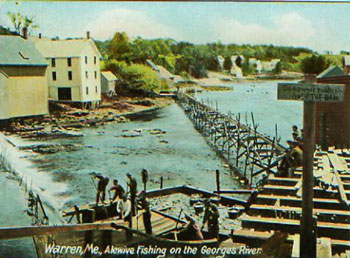 Alewife fisheries existed for centuries in coastal villages along the coast with complex harvesting systems and ladders around dams to maintain the resource. Maine State Museum Photo