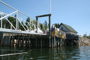 The Davises threw a gala event. Dining tables were set up on the wharf, each covered with navy blue tablecloths and set with a bouquet of flowers. A buffet was served under a white tent, with serving platters loaded up with lobster rolls, barbecued chicken, whoopie pies, and lobster-shaped cookies. Tied up at the dock was the Davis boat, the Edwin Marshall, and an Island Institute boat. The family ordered up a perfect day of sunshine with just a hint of breeze, and the venue, of course, was a classic Maine view overlooking Goose Cove. Representatives from the Department of Marine Resources, state legislature, Island Institute and Coastal Enterprises, which enacted and implement the program, came from as far as Augusta, Wiscasset, and Rockland to join the crowd. A champagne toast capped the event. “This program has been a positive, positive thing in our family,” said Wayne Davis, who owns the property with his brother Robert Davis. The Davises expressed gratitude to all those who supported and facilitated their application with the program. “The most important person to thank here today is our father,” Wayne Davis said. A year ago, the family was awarded a Working Waterfront Access Program grant of $265,000 by the Department of Marine Resources and the State Planning Office’s Land for Maine’s Future program, to place a permanent covenant on their property, a family-owned, full-service fishing wharf, with just over a half-acre of land, 420 feet of rocky shoreline, a 3,200-square-foot wharf and storage and maintenance buildings. The property has allowed four generations of family fishermen to supply lobsters, scallops and other seafood to local buyers. Robert and Wayne Davis are third-generation fishermen. The brothers’ grandfather, Fred Davis, bought the Goose Cove property in 1946 from Wilder Robbins, and their father, Edwin, took over the property and became a fisherman as well. The Davis property is the first family-owned commercial wharf preserved by the program. Family fishing businesses were once commonplace along the coast. “It’s a family heritage they’re trying to preserve,” said Coastal Enterprises, Inc., program administrator Dick Clime. An initial survey of working waterfront conducted about 10 years ago by Island Institute and CEI showed that, of Maine’s 5,000 miles of coastlines, only about 20 miles remained available for working waterfront access. The study showed that working waterfront is “in danger of disappearing completely and of being transformed piecemeal to other uses,” Clime said. The study identified more than 60 access properties that are essential for fishermen along the coast. That appears to be an underestimation. Clime and Cowperthwaite recently updated the survey, going town by town. “We came up with at least 100 properties that we feel it’s important to preserve,” Clime said. “It takes local vision and leadership to translate legislative goals to something real on the water,” said Island Institute president Philip Conkling. “The Davises are true visionaries. They have seen the future and this will be here forever.” In terms of the size of the properties preserved, the program is small. But it is huge for Maine’s economy and heritage, said Conkling. “We’re not talking about a hundred acres or 20 acres or five acres,” he said. “We’re talking about half an acre of critical infrastructure. The task is not overwhelming.” At one time, Conkling said, people had the impression that working waterfronts “were messy places they smelled like bait, they might be disreputable. They simply didn’t understand that those places were the glue that held the coastal economy of Maine together. And they are the very places most subject to changing use, from commercial use into seasonal use.” DMR Commissioner George Lapointe affirmed that the impetus that makes the program work must come from local residents. “Without their getting this started, we wouldn’t be here today,” Lapointe said of the Davis brothers. The importance of the program is self-evident, he added. “If you don’t bring the lobsters to shore, you don’t have an industry." Ted Hoskins spoke to the importance of local support for the program. “You have a family who said, 'This ought to stay with us,'” Hoskins said of the Davises. “And you’ve got people who said, 'Yes, it should.' This is the opportunity we have to recognize what can happen when we work together.” |