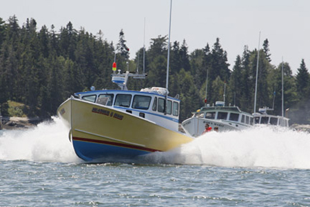 Heather & Issac and vying for first followed by Dawn Marie at Friendship. There were a lot of big boats doing some fast dancing at the races this season. Winter harbor attracted boats and a crowd. Good racing prizes and the annual lobster festival helped. ©Photo by Sam Murfitt
