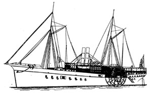 Not all hospital ships were chartered bare and sparse. Perhaps the most perfect of hospital ships was the steamer D.A. January. She was purchased on April 1, 1862 and placed under orders of Assistant Surgeon A.H. Hoff, U.S.A. A side-wheel steamer, she was built at Cincinnati in 1857. She was 4,850 tons burden, 238-feet in length with two high-pressure engines with cylinders 22-inches in diameter and 7 feet stroke.
