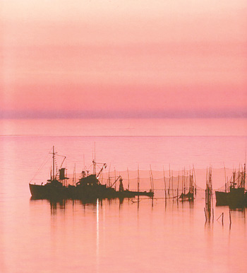 Herring weir, Grand Manan, Cabada. Herring ordinarily are fished at night. They pour into weirs built of poles driven into mud bottom and enclosed with nets. They dipped or pumped out into herring carriers. Photo "Seining The Victory Weir" Credit: ©Tim Peters - Rhythm of the Tides.