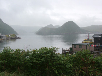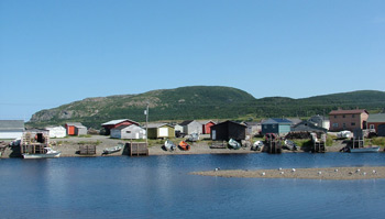 About 30 miles east of Port Aux Basques at the southwestern tip of the province is the village of Harbour LeCou. This picturesque fishing village, with fish houses and homes clinging to the rocky shore and mountainous islands in the harbor, is no longer an attractive place for fishermen.