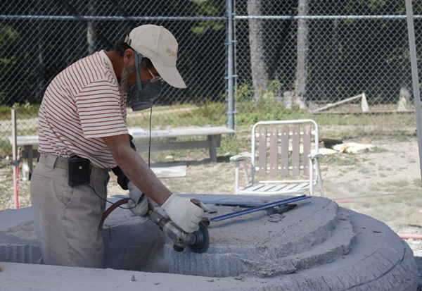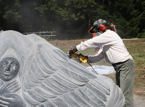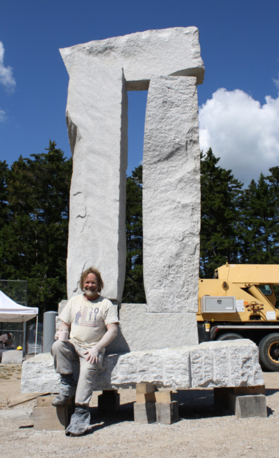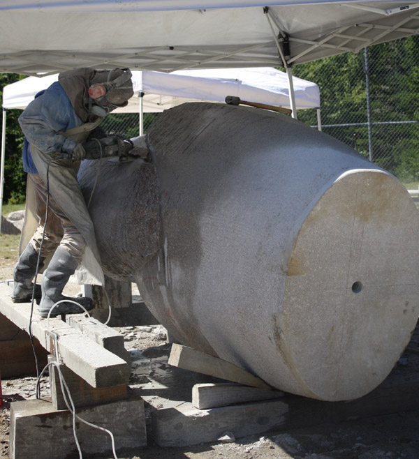 Lise Becu, Tenants Harbor, Maine finishing granite from the Black Diamond Mine quarry. Her sculpture will be installed in Addison.