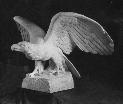 Granite Eagle carved by two master carvers with hand tools over more than a year’s time in the early 1870’s at Dix Island quarry south of Rockland, Maine. The two and one-half ton bird was installed atop the New York post office. Photo Maine Historic Preservation Commission