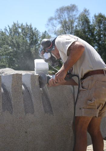 John Barlow Hudson, Ohio here carving Jonesboro Red granite. His sculpture will be going to Hancock, Maine. Hudson has works around the country and the world. From Maine he goes on to three projects this year including one in Dallas, Texas. Photo by Kayla Crowe