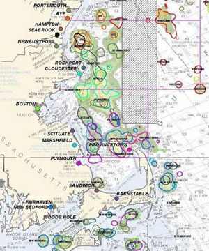 Unlike their portside counterparts, at-sea fishing communities have been undocumented and largely unknown. Researcher Kevin St. Martin, from Rutgers University recently teamed up with the NMFS Northeast Fisheries Science Center and researcher Madeleine Hall-Arbor, MIT Sea Grant, to develop a mapping tool that links port communities in New England to fisheries resource areas. The project, which was funded in part by the Northeast Consortium (NEC) developed a tool, dubbed the Atlas Project. The Atlas Project uses Geographic Information Systems (GIS) to produce maps based on anecdotal and scientific evidence of areas and resources in the Gulf of Maine that fishing communities depend upon. This was new territory for looking at spatial distribution of fishing activity. “This project is fundamentally different, we are not mapping fishing effort using landings data but mapping at-sea fishing communities and how those communities have changed over time,” St. Martin explained. Filling in the cartographic gaps will help to shed light on the human aspect of the marine ecosystems and may ultimately influence future fisheries management plans.
