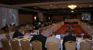 The conference room in Antalya, Turkey where the International Committee for the Conservation of Atlantic Tuna was held, November 10-18, 2007. Despite calls to reopen the debate on the fifteen-year recovery plan for eastern bluefin tuna which was adopted last year. Delegates decided to continue to implement the plan as agreed for another year. Rich Ruais photo
