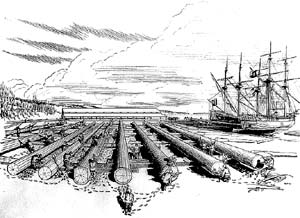 The single largest increase in demand for great masts was the result of technological advances in warship guns in the mid 1700s. The coking of coal made possible larger and more reliable castings for cannons. Larger guns meant larger ships to carry them. At a time when their naval force was expanding, the British had a dwindling and threatened supply of masts from the Baltic. But only New England had the great masts needed for the larger ships they wanted to build. In addition, the New England masts were lighter, remained more supple and lasted longer than those from Sweden and Denmark.