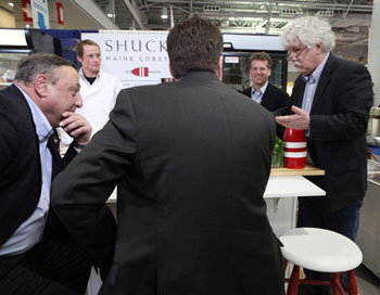 Maine lobster had a very visible presence as did Governor Paul Lepage and the new Maine Department of Marine Resources Commissioner Patrick Keliher. Fresh lobster was available, but several versions of processed and frozen product could be found among the rows of exhibitors.