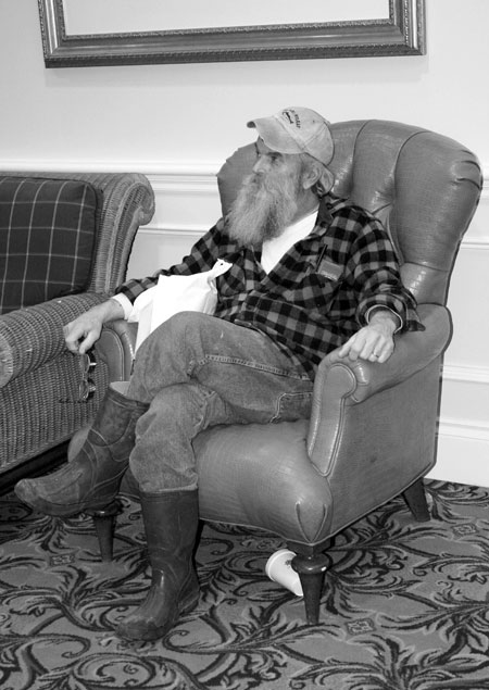 Fisherman Skip Campbell, Deer Isle, Maine. For 49 years Campbell has fished offshore from Deer Isle to Chatham. Hiking around the Forum trade show and meetings for hours can feel like a days work.