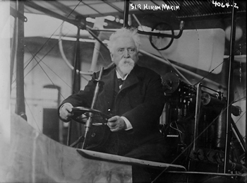 Hiram Maxim in a photo dated c. 1914, but likely taken much earlier as he died in 1916 at the age of 76. Maxim was considered a brilliant and versatile inventor. Impossible to get along with is the way colleagues and family described. Library of Congress Photo