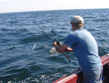 Trolling, a time-honored fishing method, serves as a dependable method of taking mackerel. And while many old-timers used heavier-than-necessary tackle, mackerel perform best on light or medium-weight fishing gear. In fact, a 12- to 14-inch mackerel puts up a fight very similar to a landlocked salmon of a similar size. Mackerel don’t jump, but they do make fast, powerful runs and like salmon, do not tire easily.