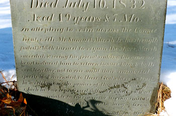 One stone in the Connecticut River of Montague is inscribed with the grim story of a man who was dragged by his horse.
