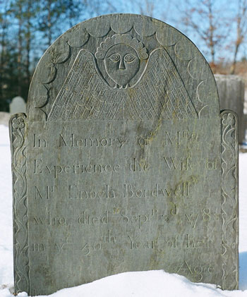 The image of a stylised angel was very common in the 17th and 18th centuries. The lettering layout lines are still visible some 230 years later. The lettering style and abbreviated words are more common to the 1600’s and 1700’s. Experience may have been the sister-in-law of Enoch who passed 8 months earlier. Photo courtesy of W.E. Oldham
