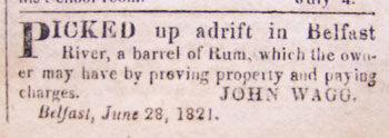 Belfast Republican Journal item from 1821. Courtesy Belfast Historical Society