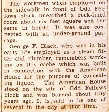 Another Belfast man operated a garage. Liquor purchasers would go in and tell him they needed some money. He would tell them to come back later at a certain time. Then, he would sell them whatever they wanted for liquor. He had a large storage area beneath the garage where he stored his liquor.