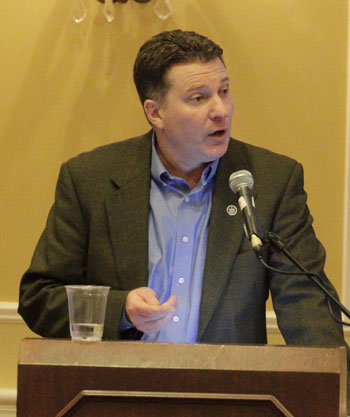 Department of Marine Resources Commissioner Patrick Keliher speaks at the Maine Lobstermen’s Association’s annual meeting, at last month’s Maine Fishermen’s Forum. Laurie Schreiber Photo