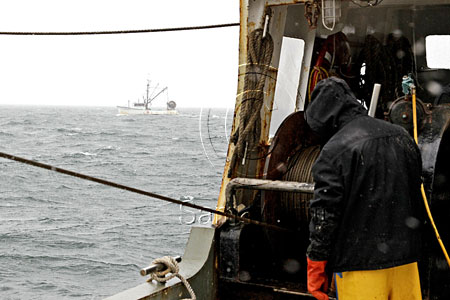 David Osiers FV Paulo Marc off Jeffries Ledges. FV Laurie Ann in background. The dramatic quota cuts that go into effect May 1, 2013, have rallied ground fishermen to seek disaster relief. The fishery has struggled through years of reduced access in anticipation of management’s stock recovery plans bearing fruit. They are hoping disaster relief will save their businesses. © Photo by Sam Murfitt
