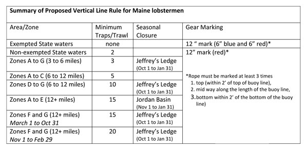 The numbers of traps per trawl proposed are based on the co-occurrence model, discussions with the public, and NMFS’ state partners, NMFS said. In Maine, the traps per trawl were defined based on state lobster zones.
