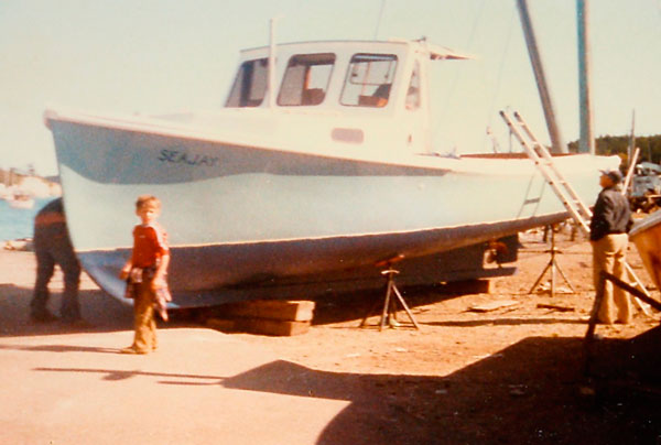 After mulling over all the pros and cons, Gotwals decided he needed to have a better boat than his old wooden 32, which by then needed extensive work. Instead, he helped Howard Heasley finish off a Webber’s Cove 34 at Heasley’s boat shop in Deer Isle, which is no longer there. “At that time” Gotwals explained, “a fiberglass boat fit my needs.” He later confessed, “I probably could have kept that boat until I was done fishing.”