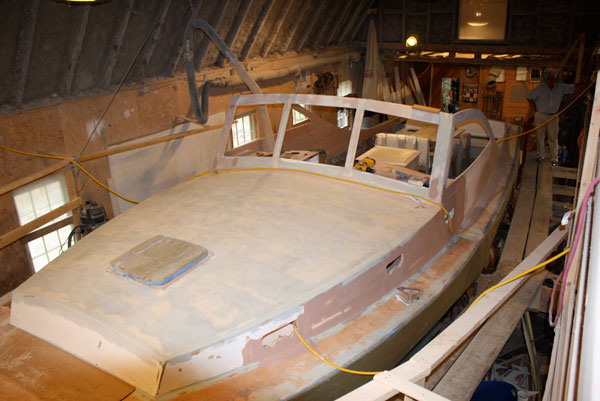 Bruce Farrin had two Jarvis Newman designed boats in his shop in August. One is a 1977 Newman 36' and the other a 1985 Newman 32'. The great design and quality workman ship has made it possible for the new owners to get great boats at considerable savings. Older glass hulls can be restored because the glass lasts said Bruce. After removing 30 years of paint Farrin found the fiberglass in great condition.