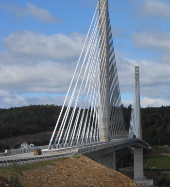 The old Waldo-Hancock Bridge served Maine well from its opening in November, 1931 to the opening of the new Penobscot Narrows Bridge on December 30, 2006. As the former bridge became less secure and difficult to repair, it was decided that building an entirely new bridge and demolishing the old suspension bridge was the most practical solution. And so the Maine Department of Transportation, the FIGG engineering group and Cianbro/Reed & Reed LLC, together planned, engineered and built the new bridge.