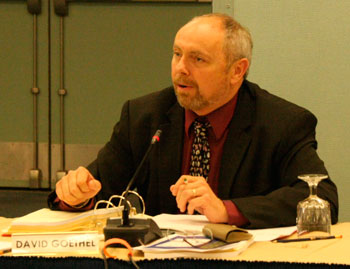 David Goethel at NEFMC meeting, Portland, Maine. Goethel has been fishing since 1967. He has been a member of the NEFMC and an outspoken critic of management policies which have driven fishermen out of business. © Photo by Sam Murfitt
